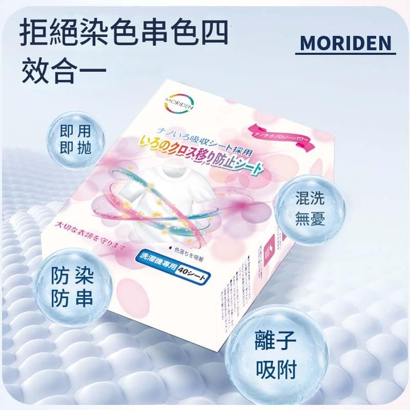 【森伝 MORIDEN】日本熱銷·納米吸色技術|洗衣吸色片|40片裝,守護您的每一件珍貴衣物