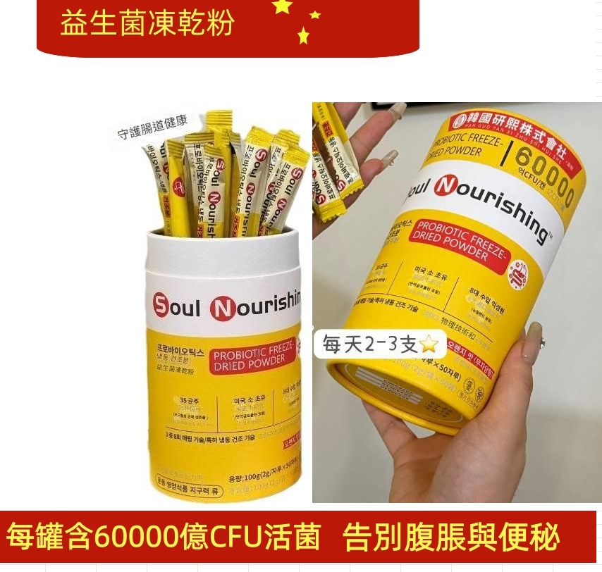 高活性凍乾技術:確保數千億活菌能抵禦胃酸,直達腸道定殖,從根源解決消化不良、腹脹問題。