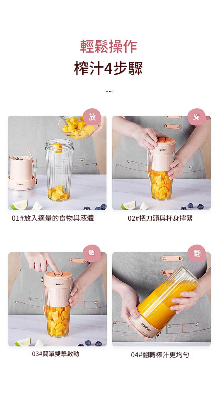 【HYUNDAI 韓系便攜榨汁杯】40秒鮮榨・15杯續航・360°防漏|時尚雙色隨行生活,實現你的果汁自由!