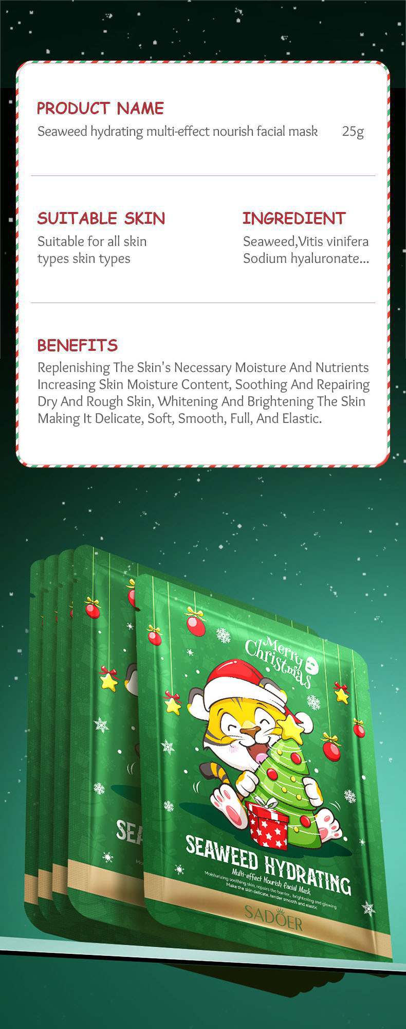 這個聖誕節,就讓SADOER玻尿酸面膜為您帶來水潤光采,迎接細緻透亮的健康肌膚!