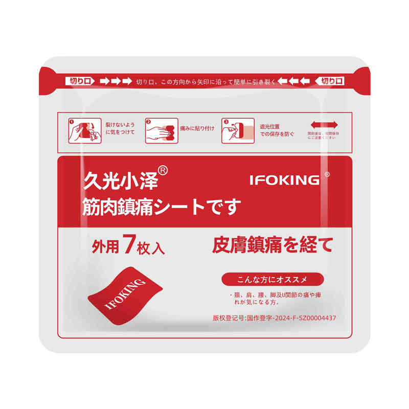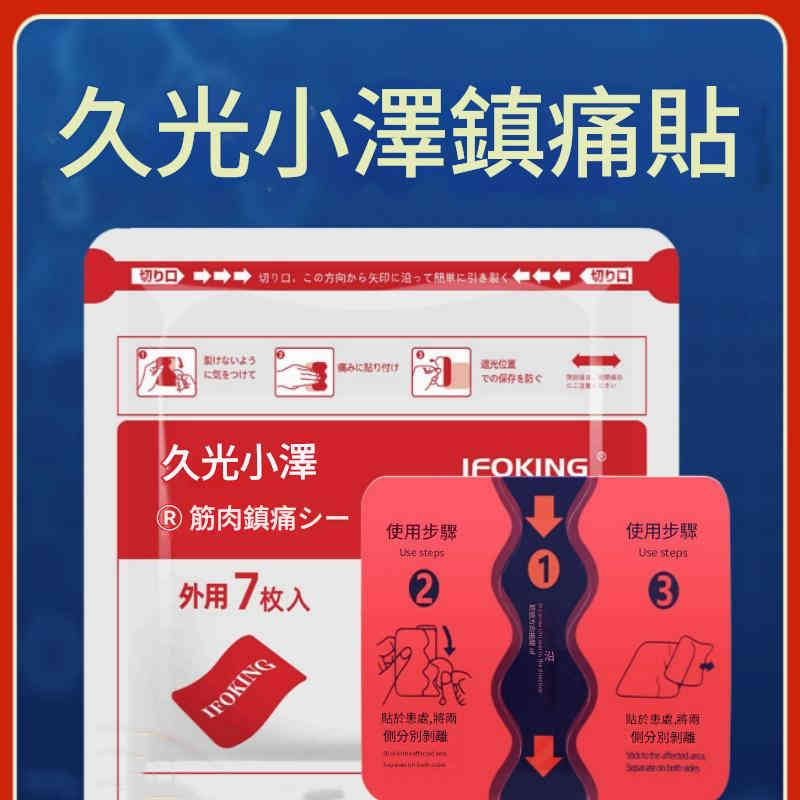 久光小澤®鎮痛保健貼片是一款日式筋骨消痛外用貼劑,含7貼/袋,主要成分為獨活、羌活、紅花、骨碎補等中藥成分。