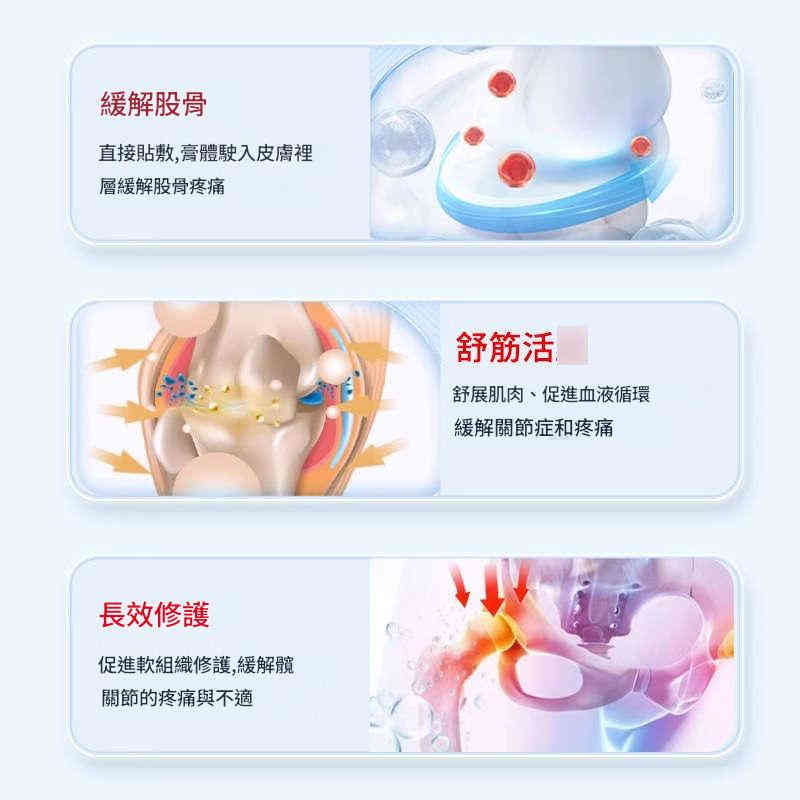 針對股骨頭壞死、髖關節積液及周邊組織損傷設計,直達疼痛根源,有效緩解髖部、腿部及臀部放射性疼痛。 - 深層滲透技術