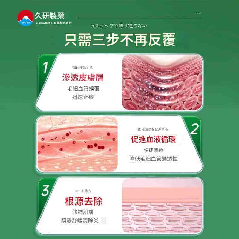 產品名稱明確指出其針對多種慢性、反覆發作的皮膚問題,包括:
