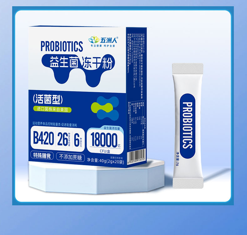 五洲人益生菌凍乾粉+益生元固體飲料40g(2g*20袋)/盒 X2