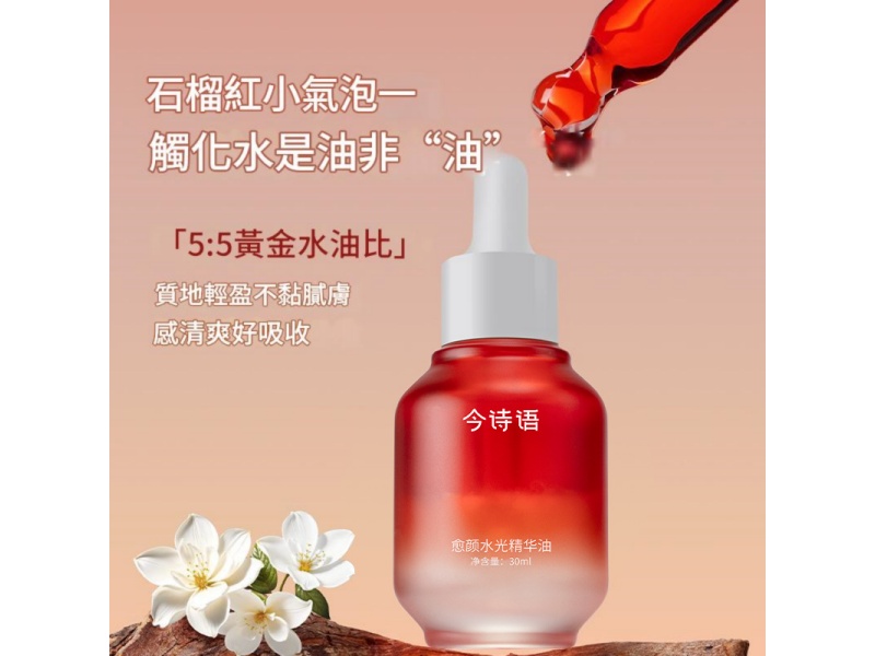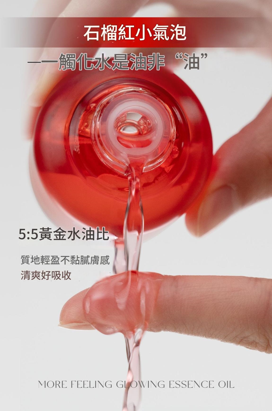 「石榴紅小氣泡」質地,觸膚即融,輕盈滲透,油皮、混油肌也能安心使用。
