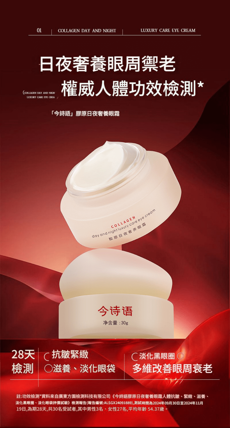 🌟 今詩語膠原日夜奢養眼霜,以科學實證與精準配方,為你重現緊緻、明亮、年輕的雙眸神采。
