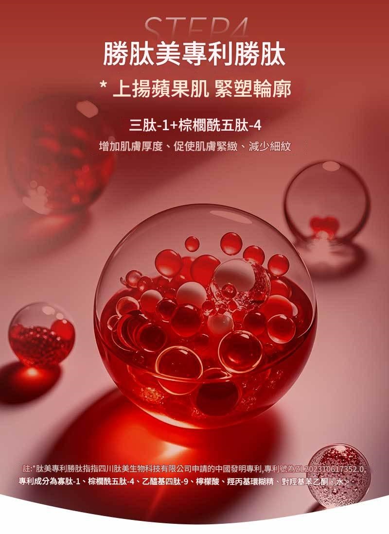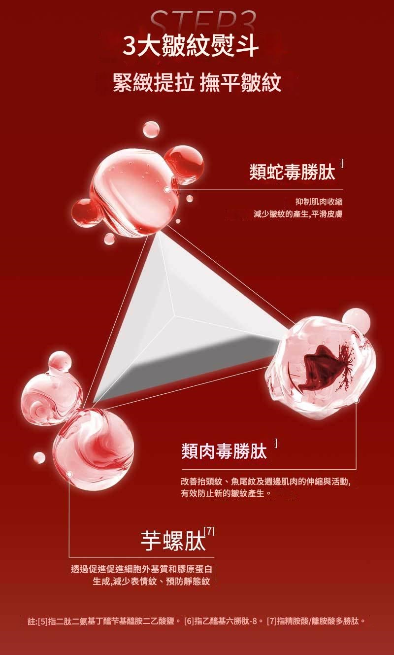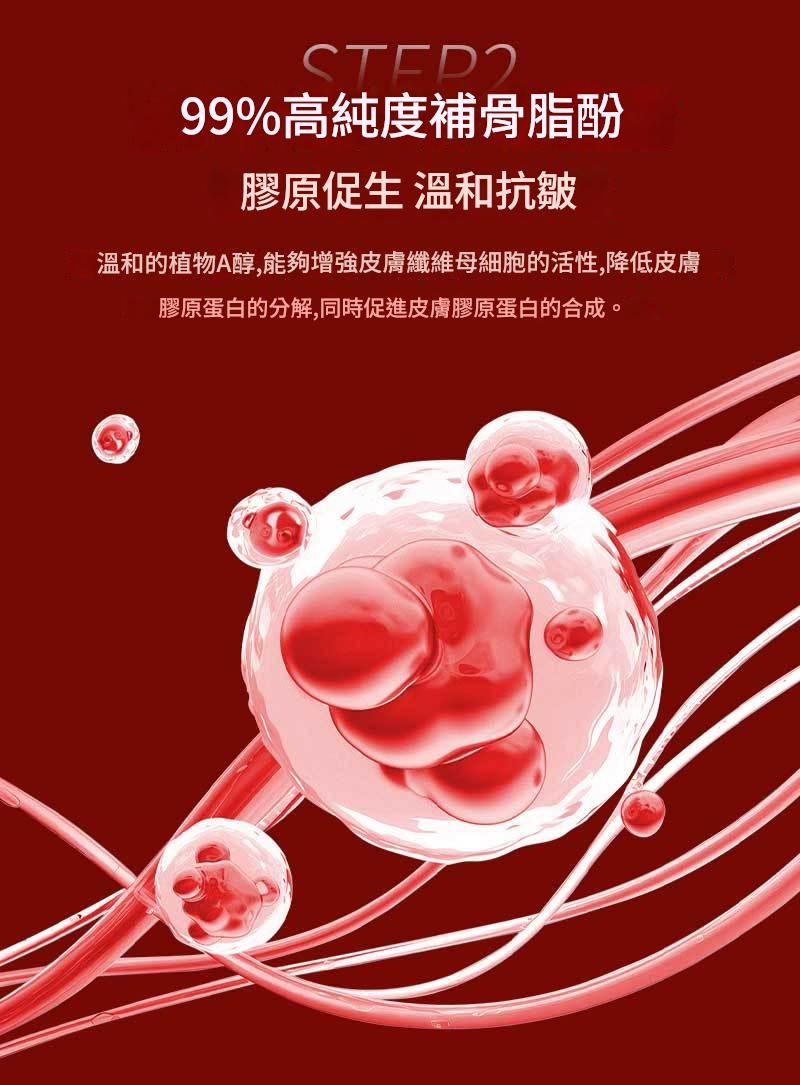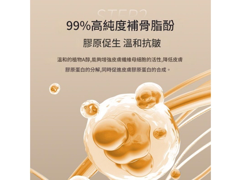 肉相老化:99%高純度補骨脂酚(植物A醇) + 3大皺紋熨斗勝肽(類蛇毒、類肉毒、芋螺肽),溫和淡紋、緊緻輪廓