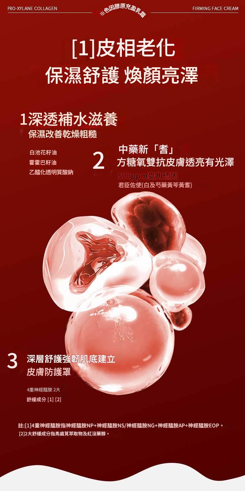 骨相衰老:800ppm重組III型膠原蛋白 + 多重促膠原勝肽 + 珍稀滇草萃取,直補膠原、豐盈飽滿
