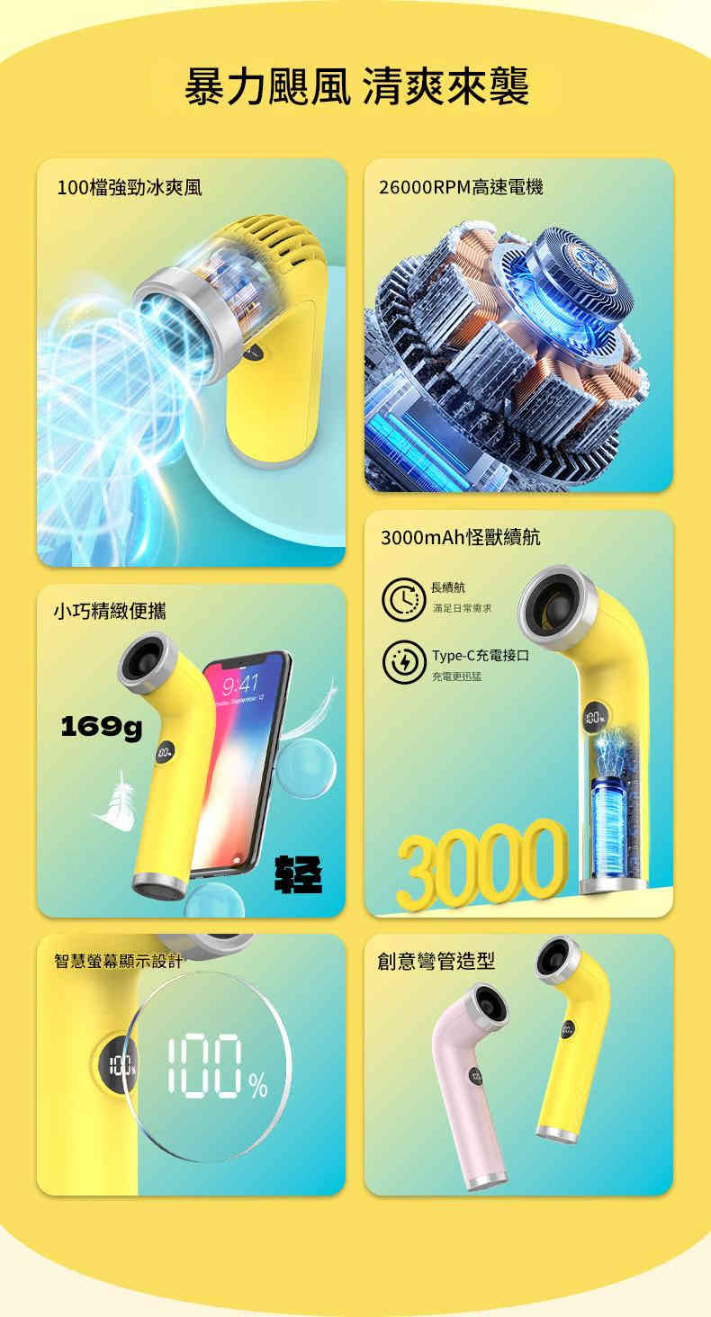 ✅ 輕巧便攜・智能數顯:僅重169g,比手機還輕,掌心大小隨身帶;智能屏幕實時顯示電量與風力檔位,操作一目了然!