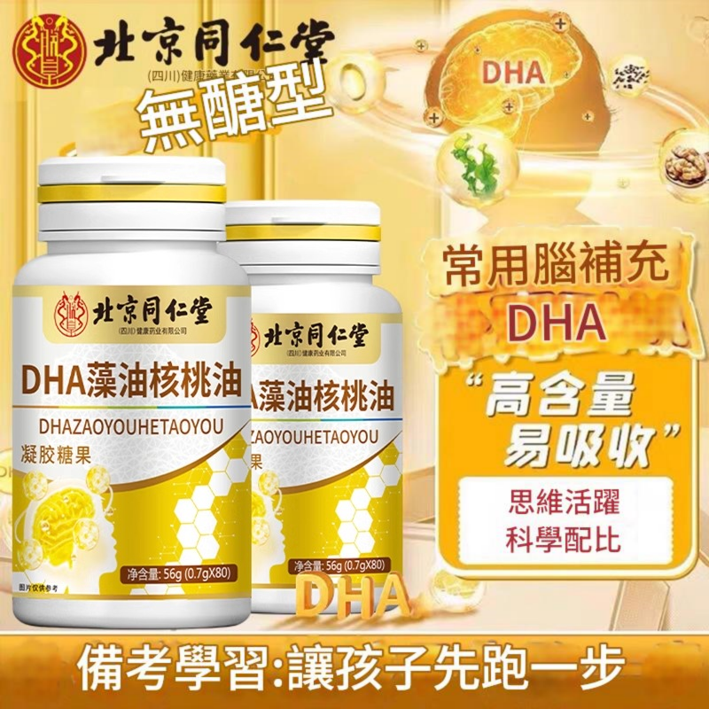 讓北京同仁堂 DHA藻油核桃油凝膠糖果,成為全家人的智慧選擇,陪伴孩子成長、助你應對每一個用腦挑戰!