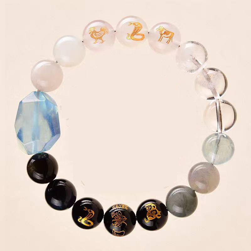 針對十二生肖設計專屬手串,融合「三合」「六合」貴人生肖理論,增強個人運勢、化解太歲、吸引貴人。