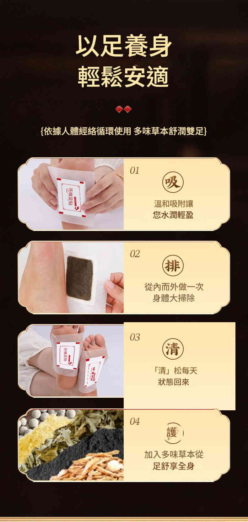 🌿 夜間養護好輕鬆:睡前貼於足底湧泉穴,整晚溫和吸附,幫助身體代謝,早晨撕下即感輕盈活力。