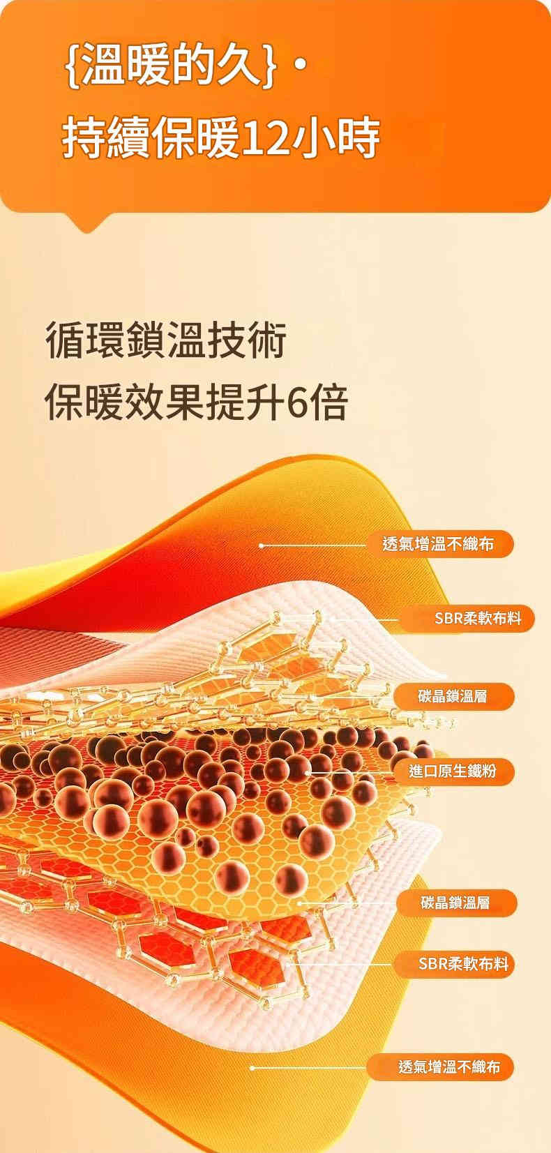 持久保暖:循環鎖溫結構,單片可續暖長達約12小時,全天通勤與辦公一片就夠。