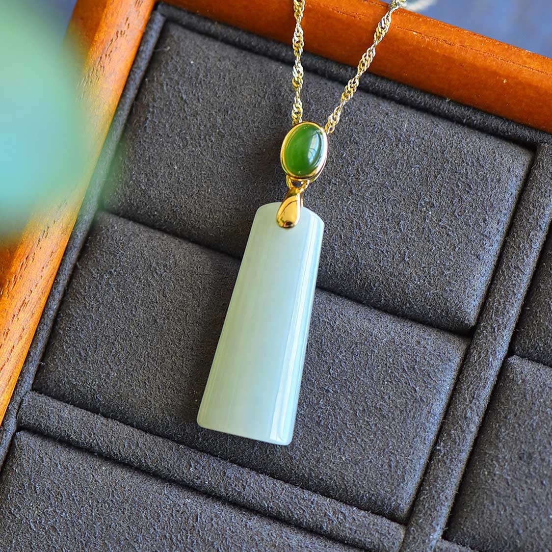 這款吊墜的特別之處還在於它的「一物二色」設計。白玉代表著純淨、安寧與平和,寓意著內心的澄明與品德的高潔;綠色玉石代表著生命、希望與活力,象徵著生命的蓬勃與未來的無限可能。兩種色彩在同一件飾品上和諧共存,創造出既內斂又生動、既穩定又充滿活力的完美平衡。這正是現代女性應有的品質——既能保持內心的清淨,也能擁抱生活的多彩。