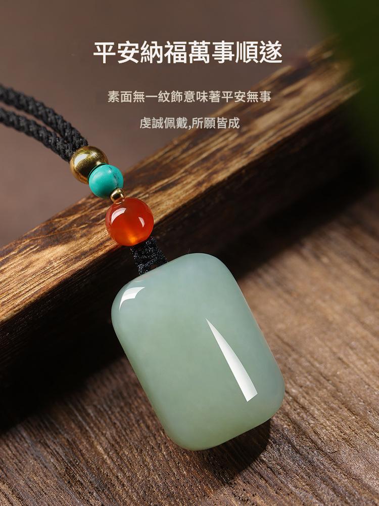 和田玉 青玉 平安無事牌小吊墜 男女款玉石項鍊
