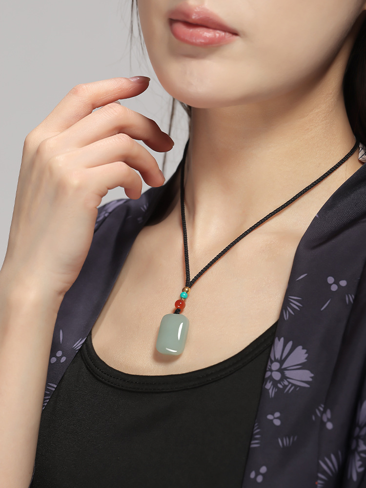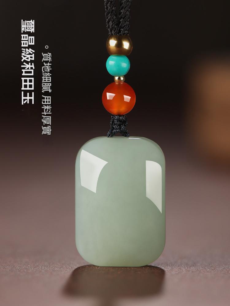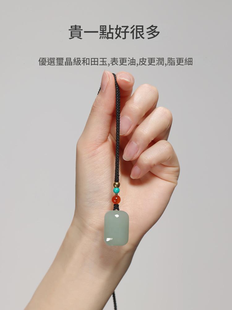沿用經典的“無事牌”造型,牌面光素無任何雕飾,稜角經細膩打磨,圓潤流暢 。這不僅展現了和田玉的天然之美,更體現了“大道至簡”的匠心工藝 。產品常配有編織掛繩,並點綴祥雲頂珠、金珠或白玉等元素,細節精緻,男女皆宜 。