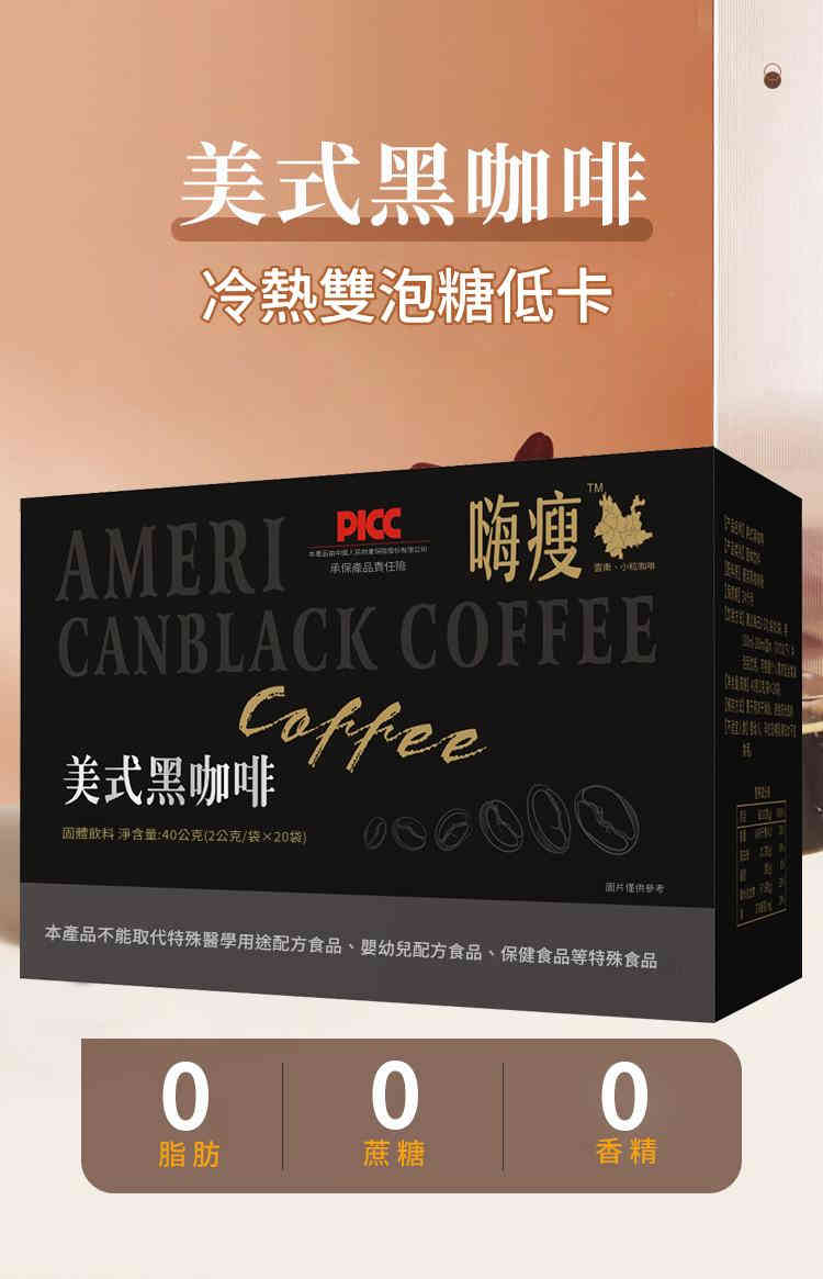 嗨瘦美式黑咖啡晨間速溶代餐2g x20包/盒 x3盒
