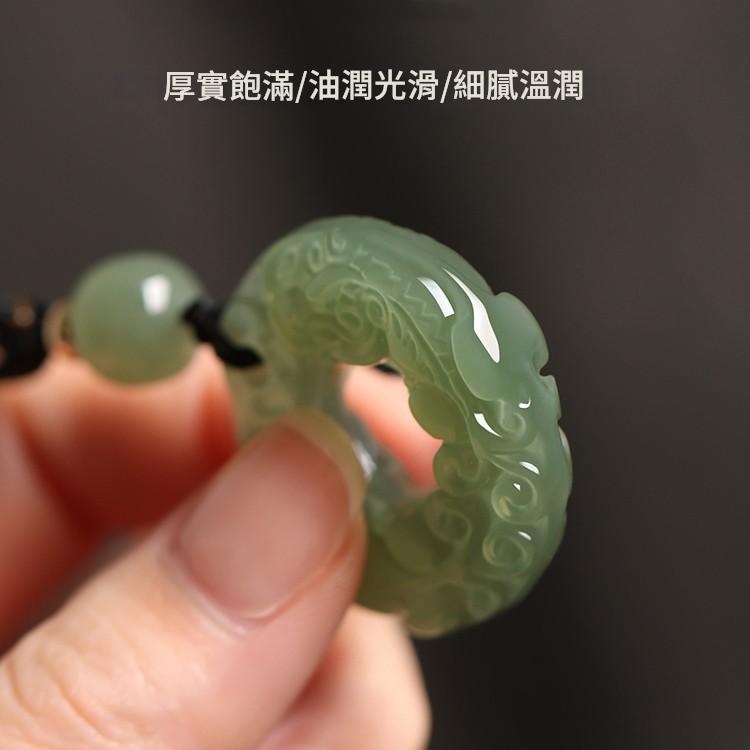 中性設計:青玉色澤沉穩,雙面貔貅造型大氣不張揚,無論男士還是女士佩戴都非常合適,可作為情侶款或夫妻款共同佩戴 。