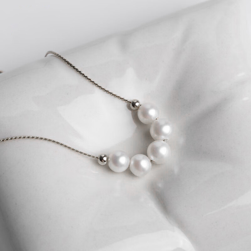 天然淡水諸暨珍珠S925銀微笑五珠項鏈