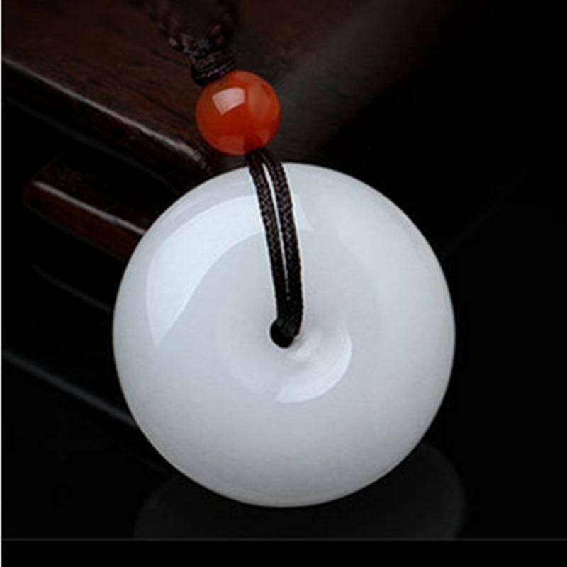 天然白玉平安扣吊墜 男女款項鍊 附證書禮盒