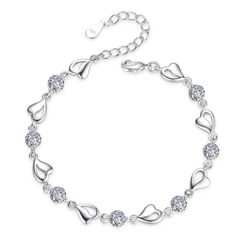 這是一款設計精緻、充滿愛、非常閃耀的時尚手鍊。它結合了浪漫的心形元素和璀璨的水晶,採用不易過敏的鍍925銀材質,風格韓系百搭,是贈送禮物的絕佳選擇