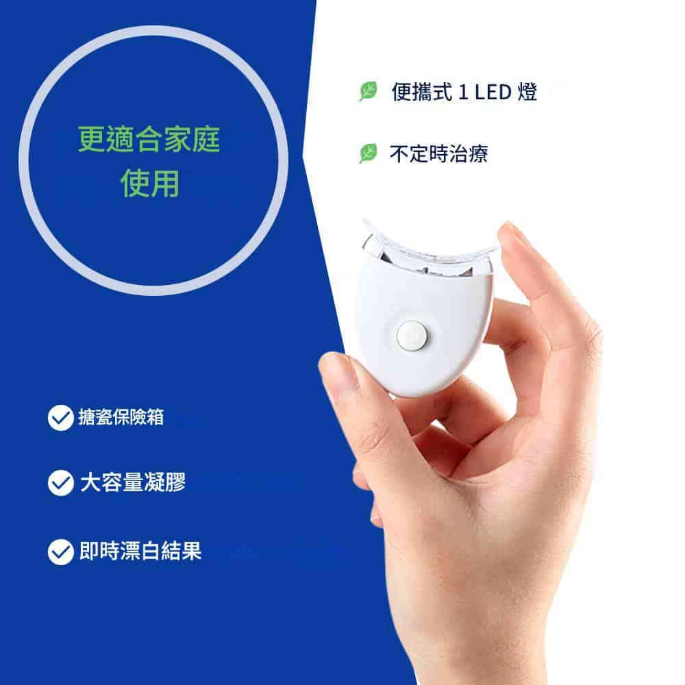 搭載便攜LED藍光燈,激活凝膠有效成分,加速分解牙漬,提升美白效率。