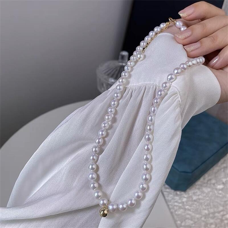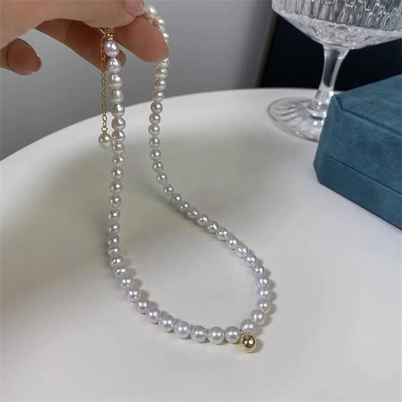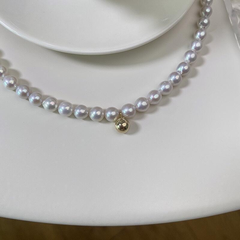 選用有核微巴洛克淡水珍珠,每一顆都擁有獨一無二的自然形態。微微起伏的不規則表面並非瑕疵,而是大自然精心雕琢的痕跡,讓珍珠在光線照射下呈現多層次的立體光影。6-7mm的精巧尺寸,恰到好處地輕盈點綴頸間,既有珍珠應有的存在感,又不會過於成熟隆重,是踏入珍珠世界的最佳起點。