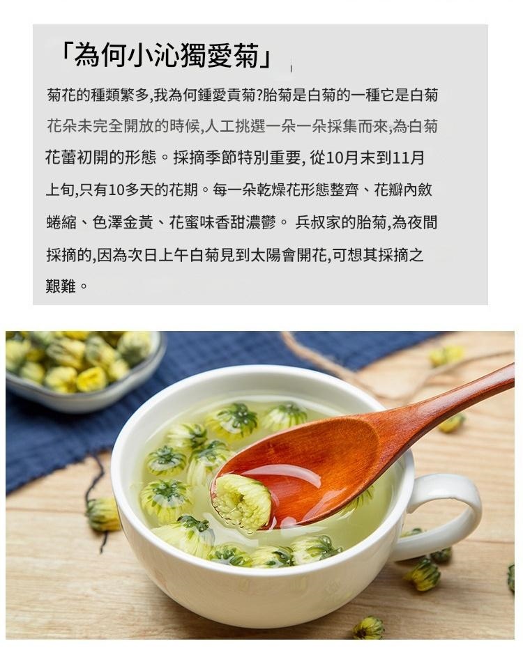 小沁獨愛胎菊,只因它不僅是花,更是時間與人工的凝萃。我們嚴選頭採胎菊王,僅於每年10月末至11月上旬,趁夜手工採摘,趕在日出開花前留存最完整的營養與風味。每一朵均經精心挑選,形態勻整,蜜香濃郁,沖泡後依然花朵飽滿,滋味甘醇,兩泡猶有餘香。