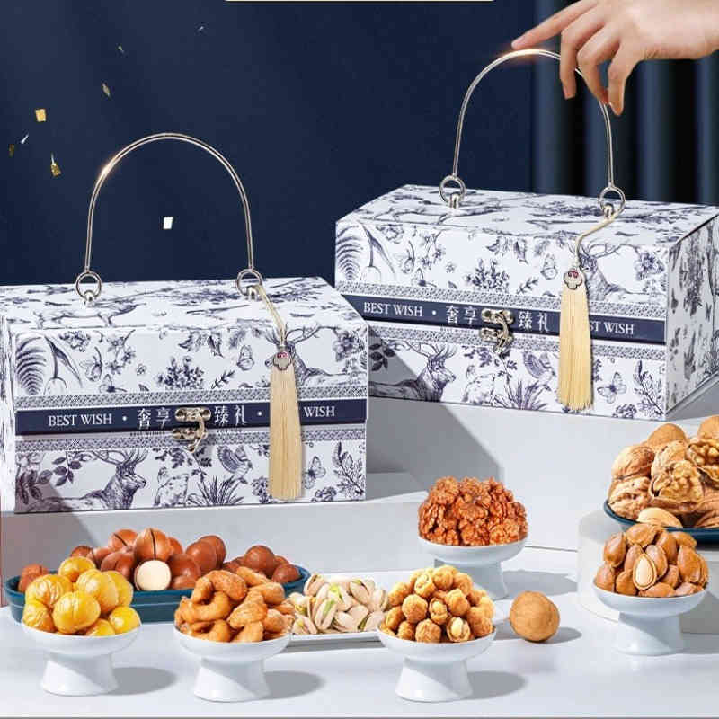 新年BEST WISH輕奢青花款手提禮盒 13包7堅果 890g/盒