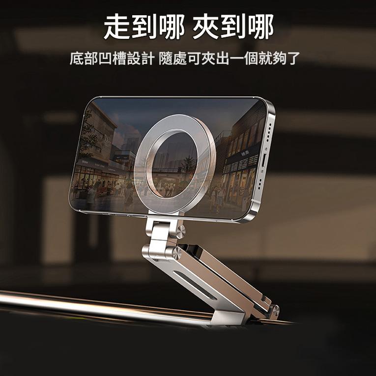 ✅ 三合一全能設計:磁吸+夾持+1/4螺口拓展