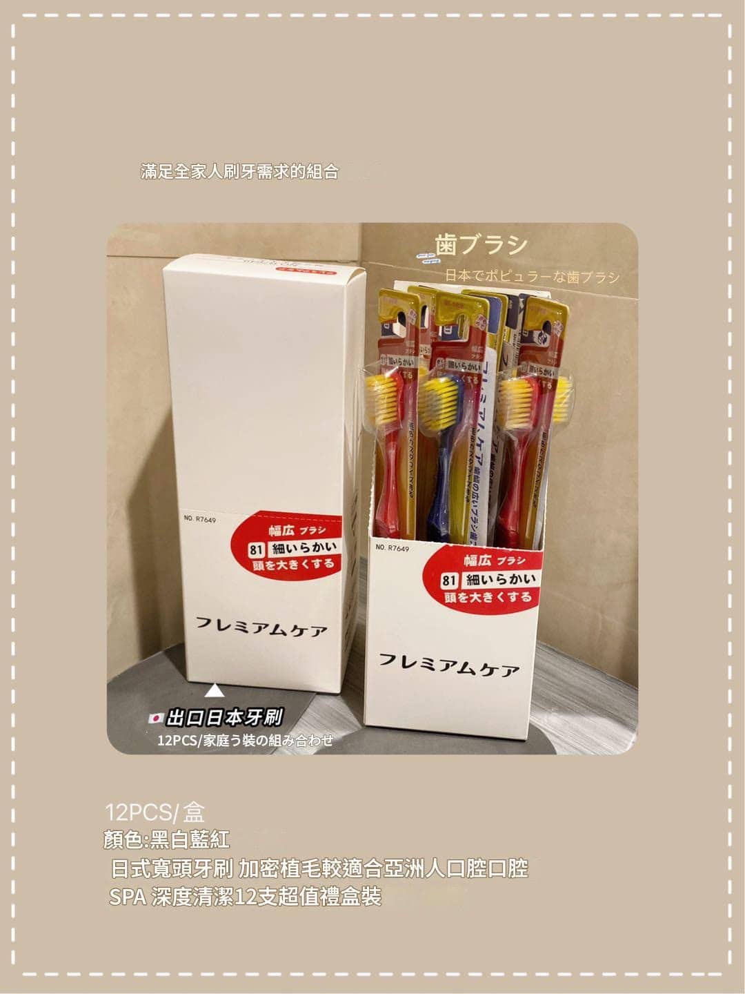 日式高級寬頭軟毛牙刷超值家庭盒裝12支