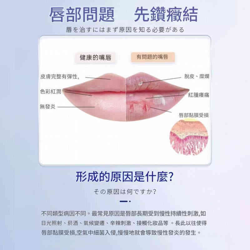 專為舒緩及修復「口角炎」(嘴角裂開、發炎)所設計,能有效對抗因缺乏維生素、細菌或真菌感染引起的嘴角不適。