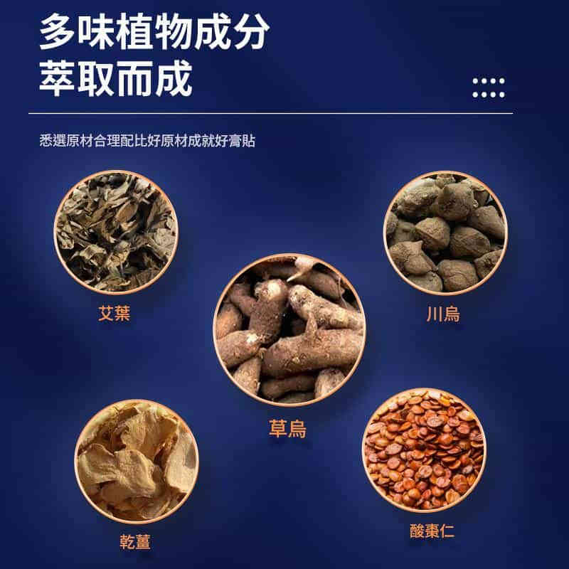 ✅ 多種植物萃取:精選艾葉、草烏、川烏、乾薑、酸棗仁等草本成分