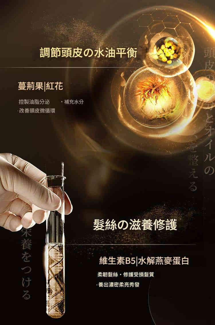 融合人參、當歸、何首烏等多重草本營養,直達髮根,促進新生,養出濃密強韌秀髮。