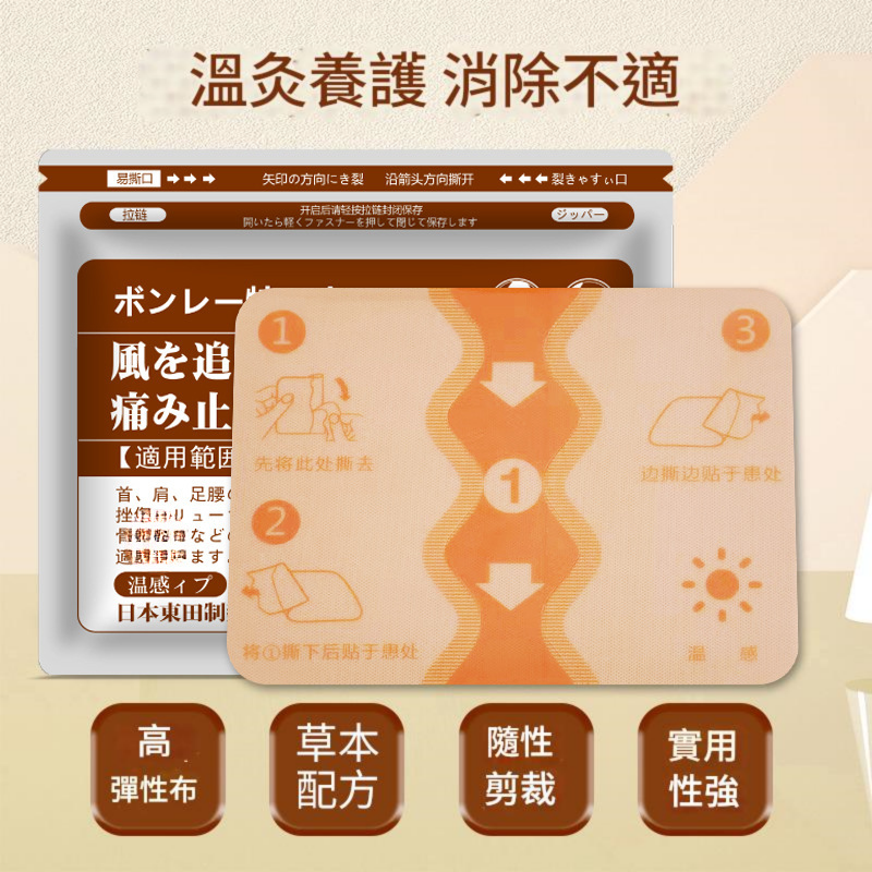 貼布具溫感效果,促進局部循環,舒緩肌肉與關節不適