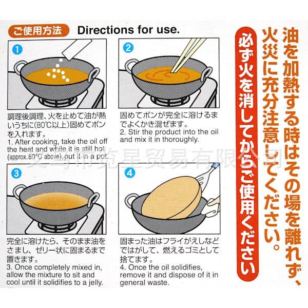 ✅ 一秒固化,輕鬆處理:一包倒入,熱油迅速凝固成固態果凍,用鍋鏟就能輕鬆剷起,當作一般可燃垃圾丟棄。