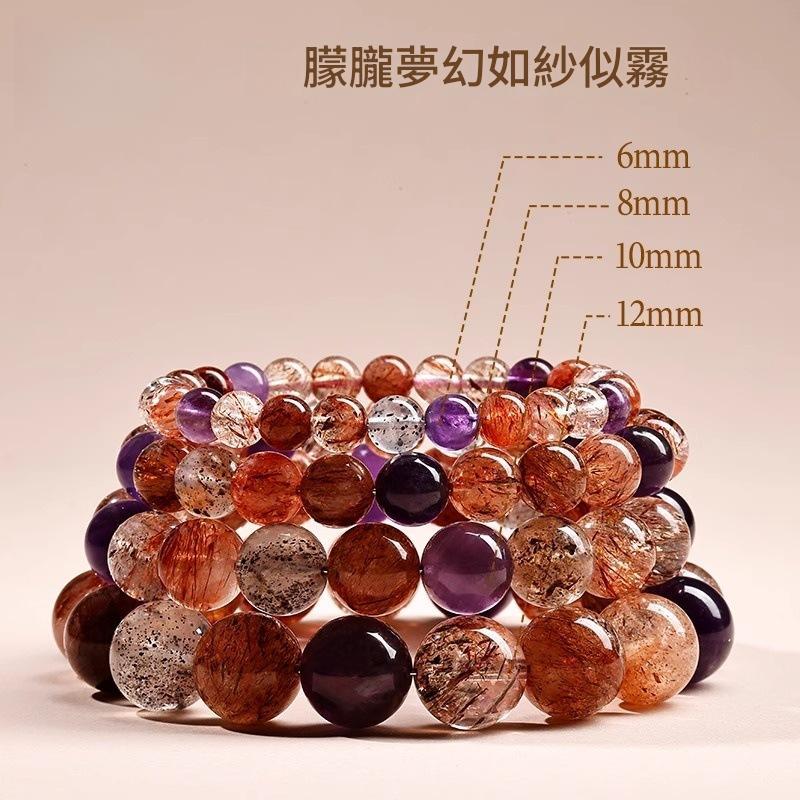 每顆珠子均經手工打磨,融合超七、紫水晶與天然礦石,呈現獨一無二的色彩層次。佛珠造型典雅百搭,無論日常佩戴或重要場合,皆能展現低調奢華的品味。 -