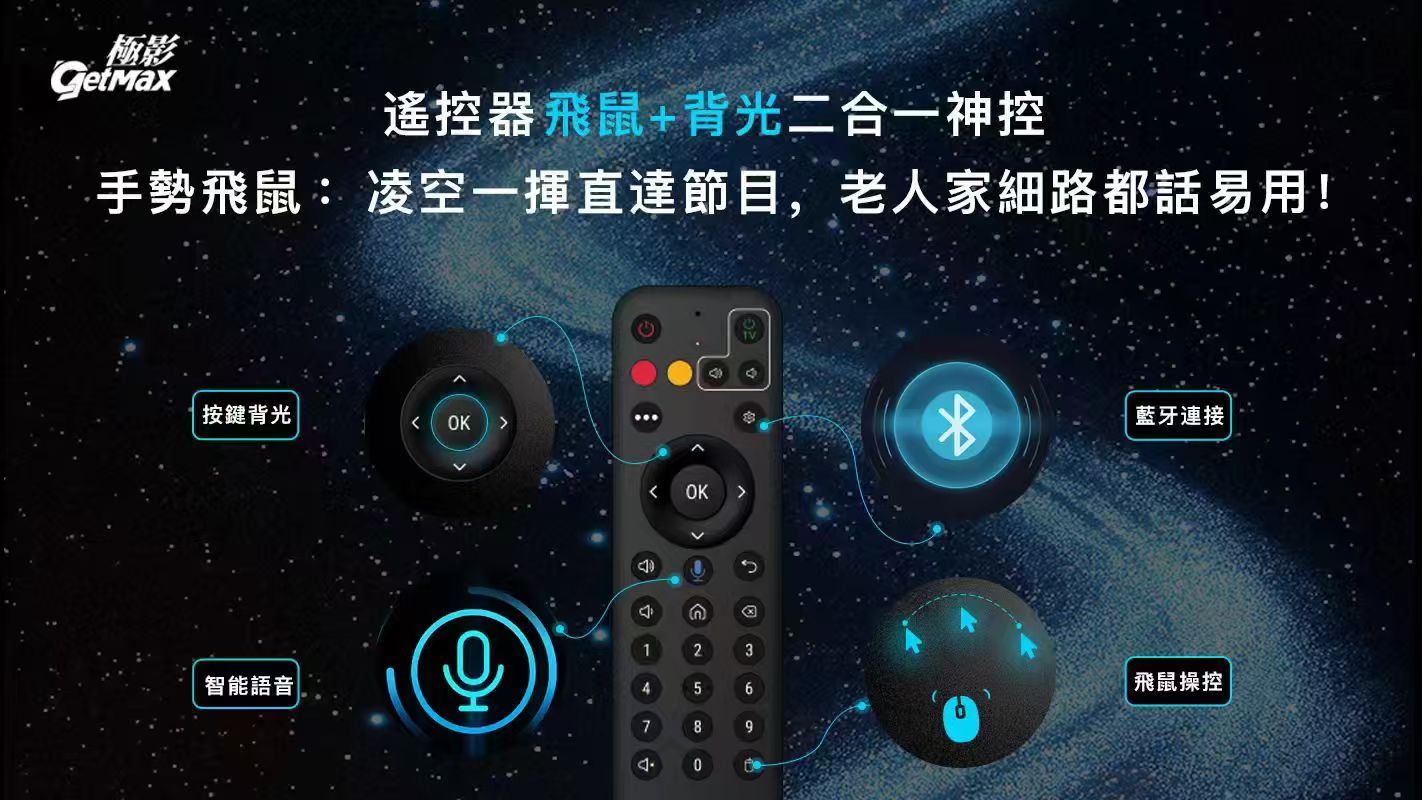 遙控功能 語音飛鼠 + 背光按鍵 + 手機App操控