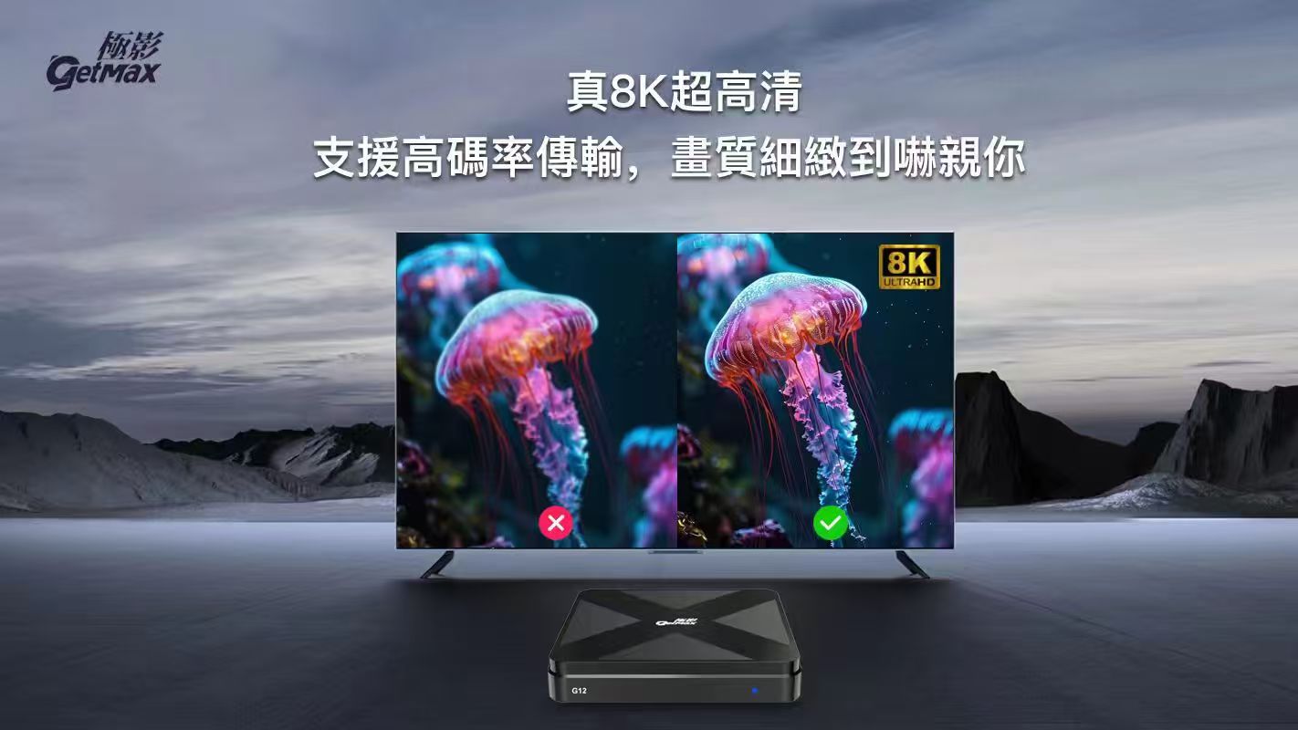 極影GETMAX G12 不僅是一台電視盒,更是您家庭的全能娛樂中心。無論您是影迷、遊戲玩家、K歌愛好者,還是追求極致體驗的科技控,G12 皆能滿足所需!