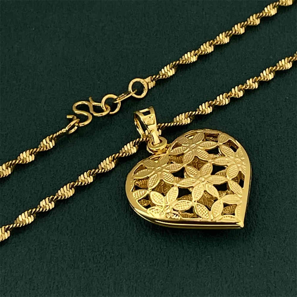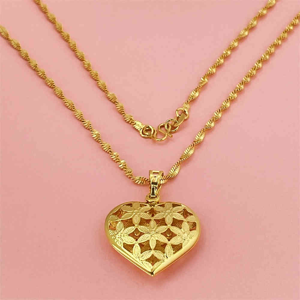 沙金真空電鍍24K金水波心牌項鍊