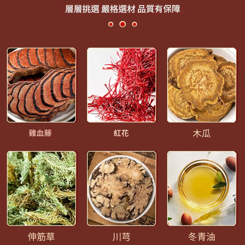 紅花、川芎、木瓜:促進局部循環,緩解緊繃。