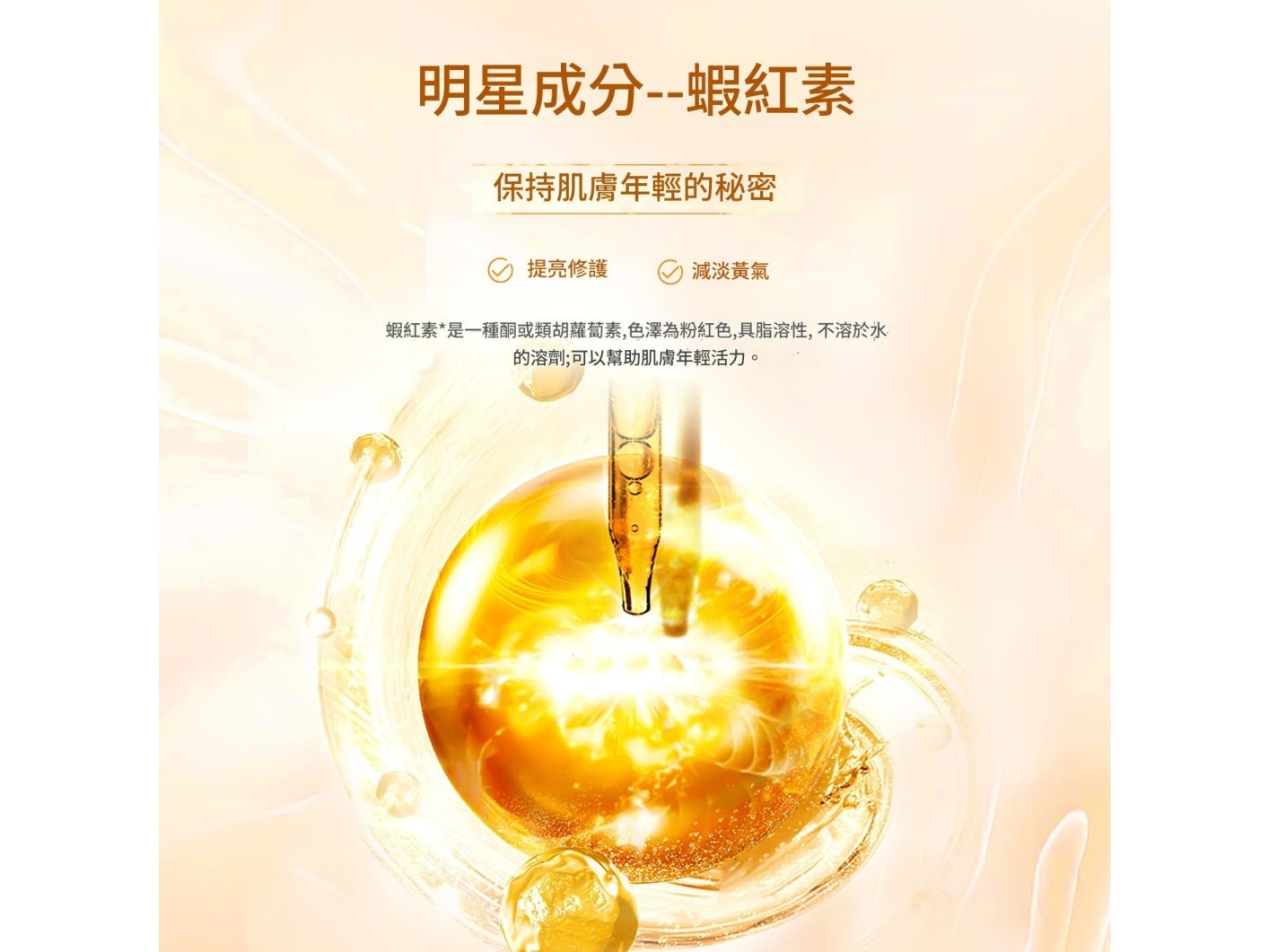 🦐 明星成分:蝦紅素,保持肌膚年輕的秘密