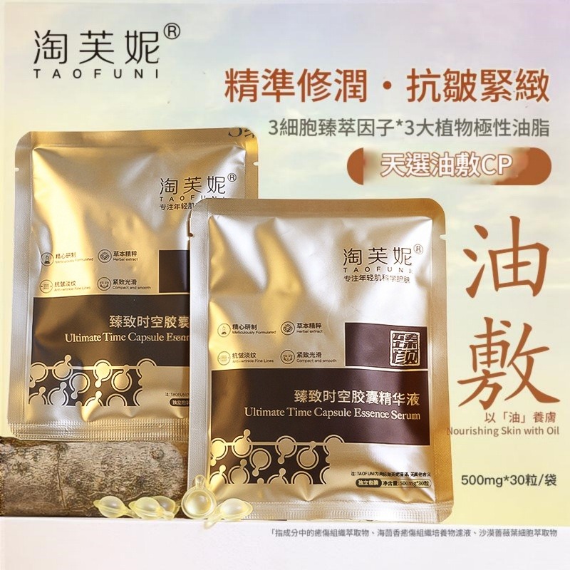 淘芙妮臻致時空膠囊精華液,以3大植物極性油脂搭配3大細胞臻萃因子,質地輕盈如水,觸膚深透不黏膩,一瓶實現修潤、抗老、緊緻,重現肌膚年輕光澤。