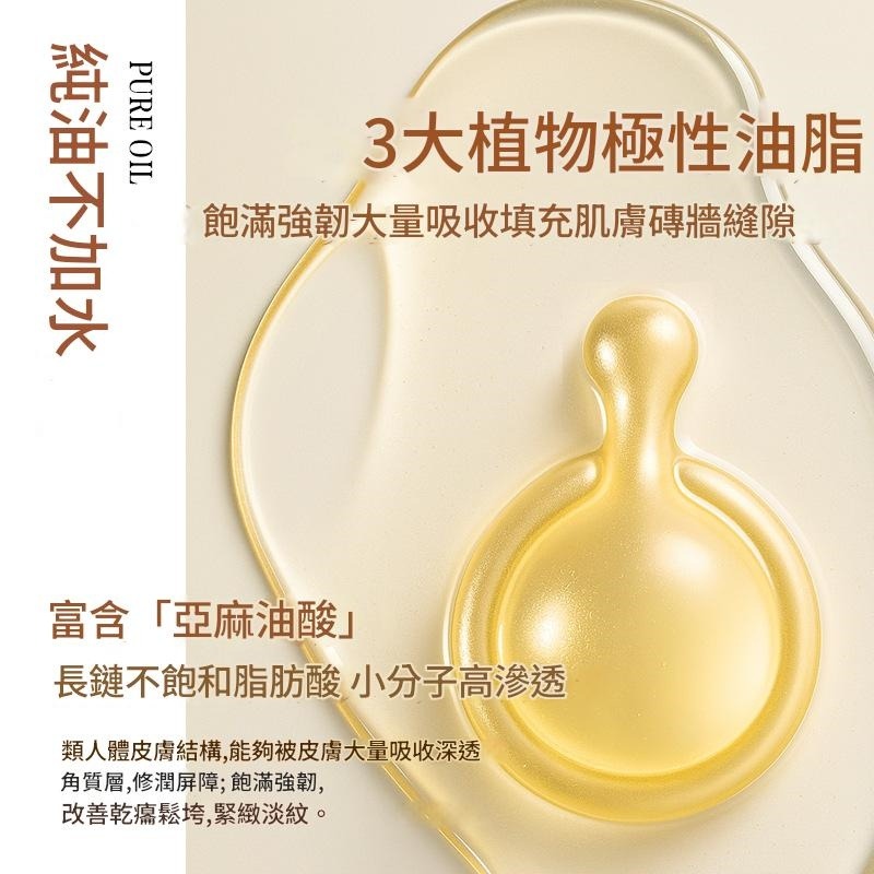 3大植物極性油脂:富含亞麻油酸,小分子高滲透,類人體皮膚結構,能深透角質層、修潤屏障、飽滿強韌,改善乾燥細紋。
