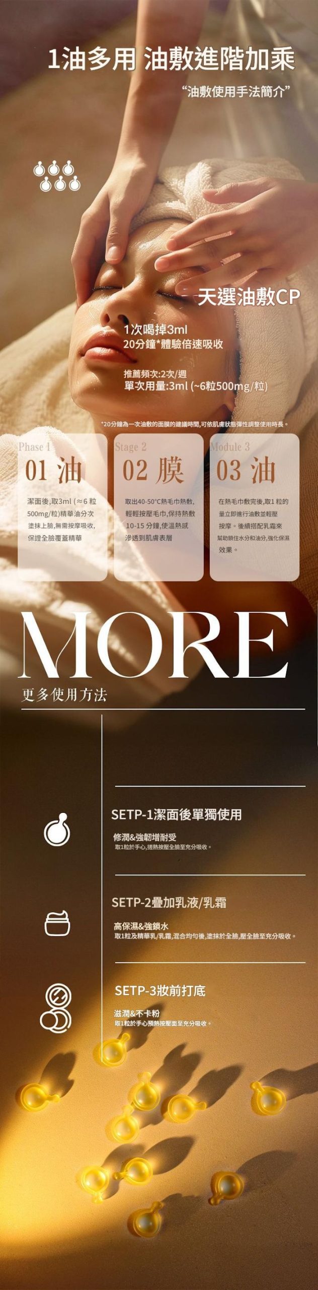 油敷專用:搭配淘芙妮凍乾面膜,膚感更清爽,以油養膚效果加倍。