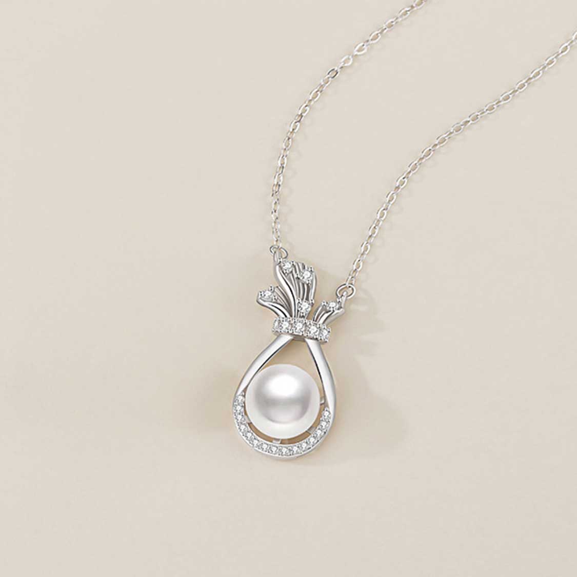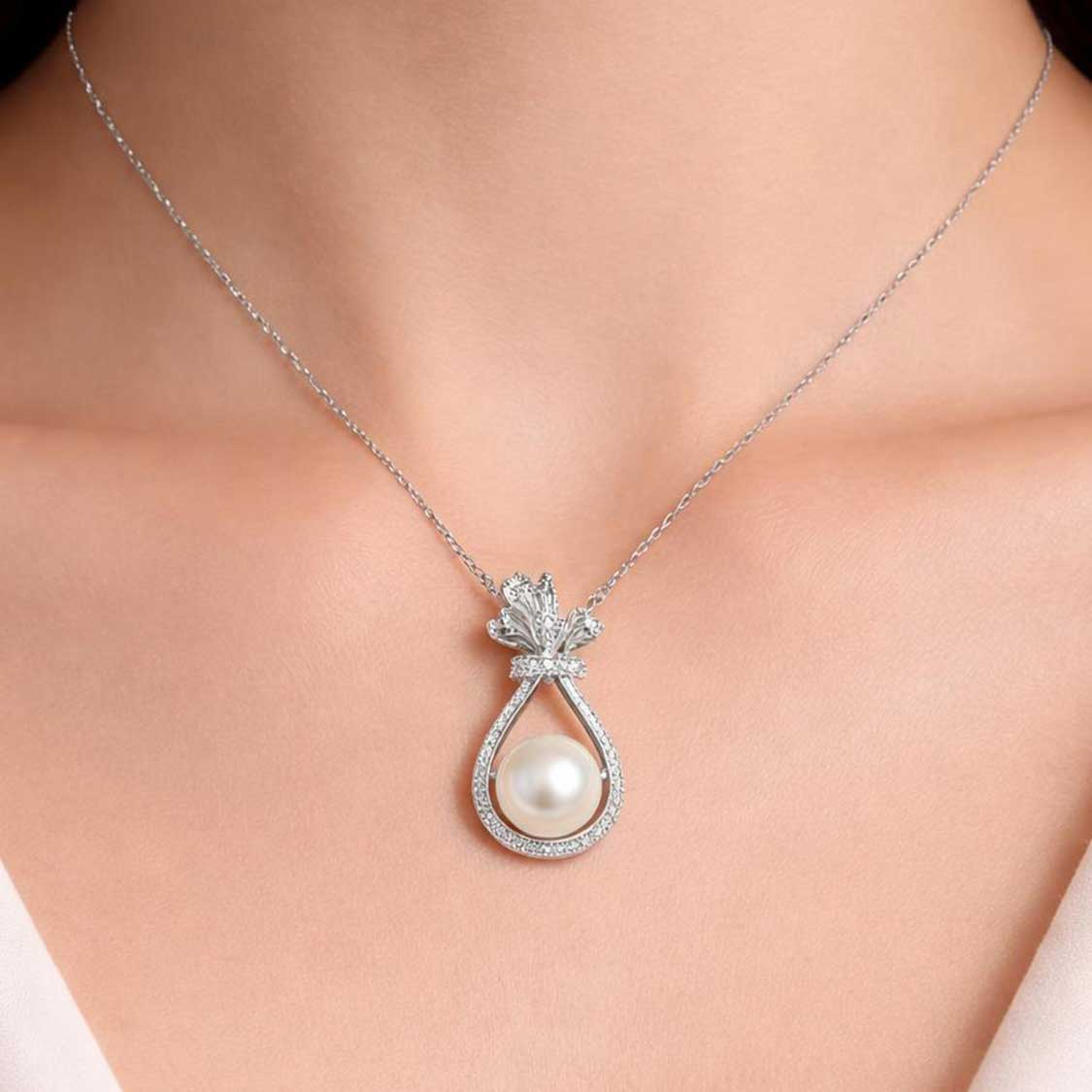 精選高品質淡水珍珠,配以閃耀的鋯石花冠設計,每一塊鋯石都經過精心打磨,確保光線的完美折射。細膩的銀色鏈身與華麗的吊墜形成視覺對話,無論是日常穿搭或重要場合,都能演繹出獨有的優雅風采。