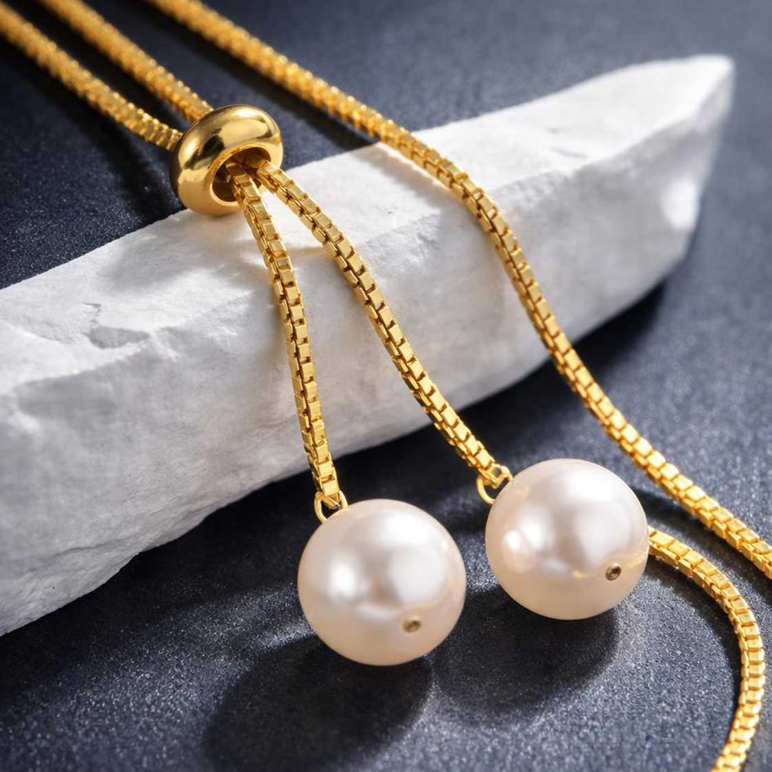 項鏈總長可調整,最短約 35 公分(日常穿搭長度),最長可達 70 公分(後背鏈效果)。精妙的銜接設計確保任何長度下都展現出完美的視覺效果。珍珠垂墜點的距離約 15-20 公分,使兩顆珍珠在運動時形成輕微的搖曳,展現出活力與優雅的完美結合。