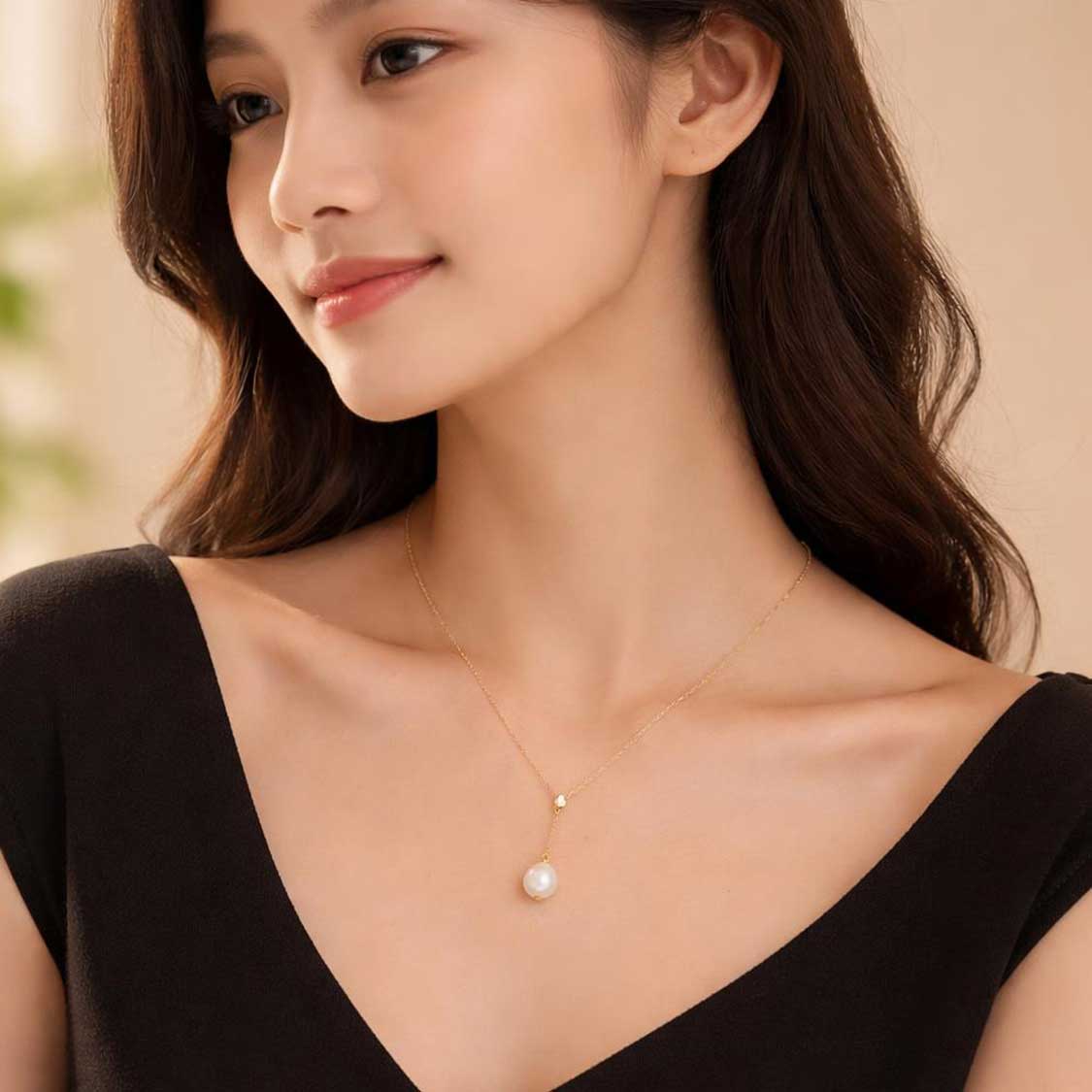 特別建議搭配:V領或深U領的服飾,Y字設計能完美呼應V領的線條,創造出視覺上的和諧與延伸感;露肩服飾,珍珠垂墜能夠吸引視線向下,突出肩膀與頸部的優雅線條。