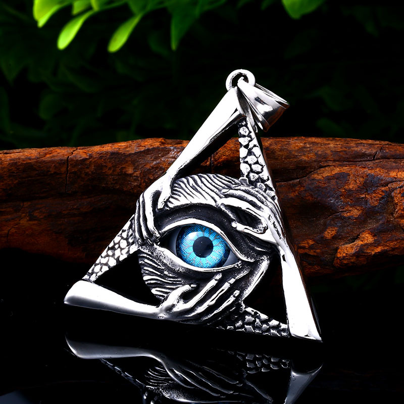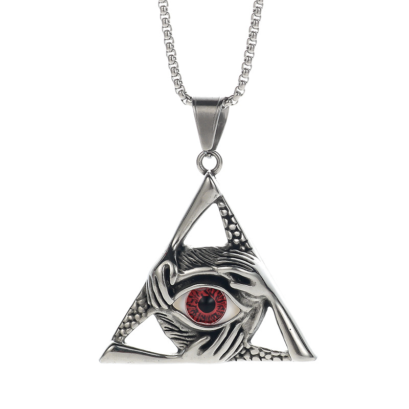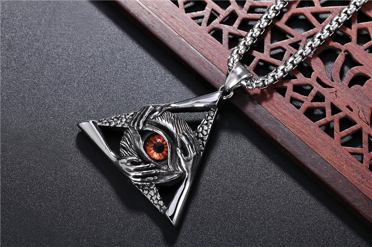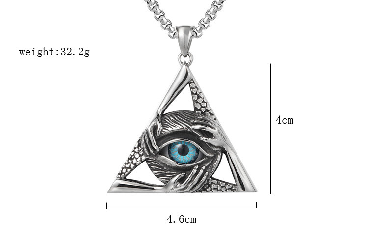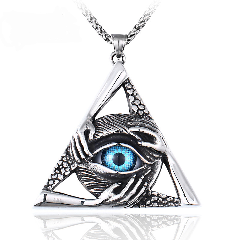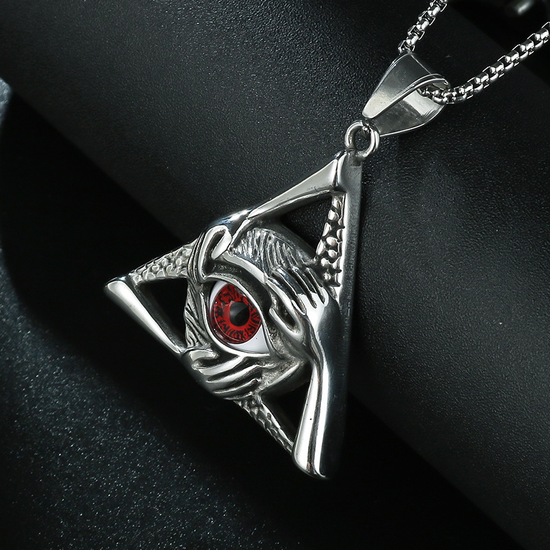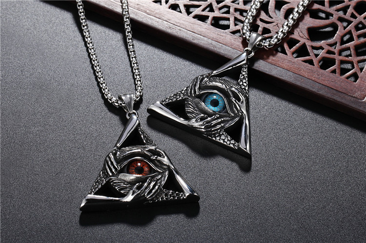 潮流鈦鋼男仕飾物 三角惡魔之眼邪惡之手吊墜頸錬