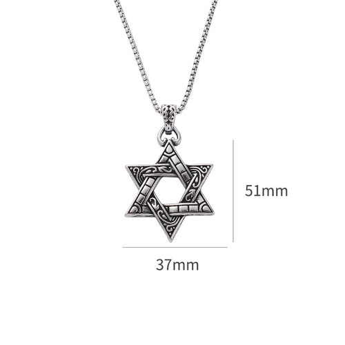 潮流鈦鋼男仕飾物 復古六芒星吊墜頸錬